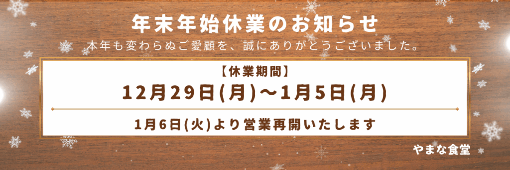 いつもやまな食堂をご利用いただき、ありがとうございます。